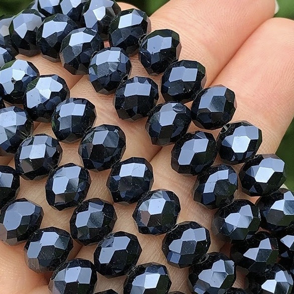 Бусини кришталеві (Рондель) 8х6 мм, 66 намистини, колір графіт