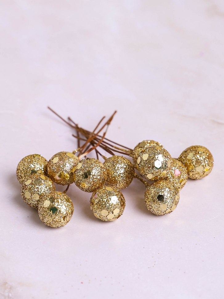 Кульки на дроті, присипані глітером. Діаметр кульок 12 мм, довжина дроту 5,0 см, Використовується в різдвяних і новорічних композиціях